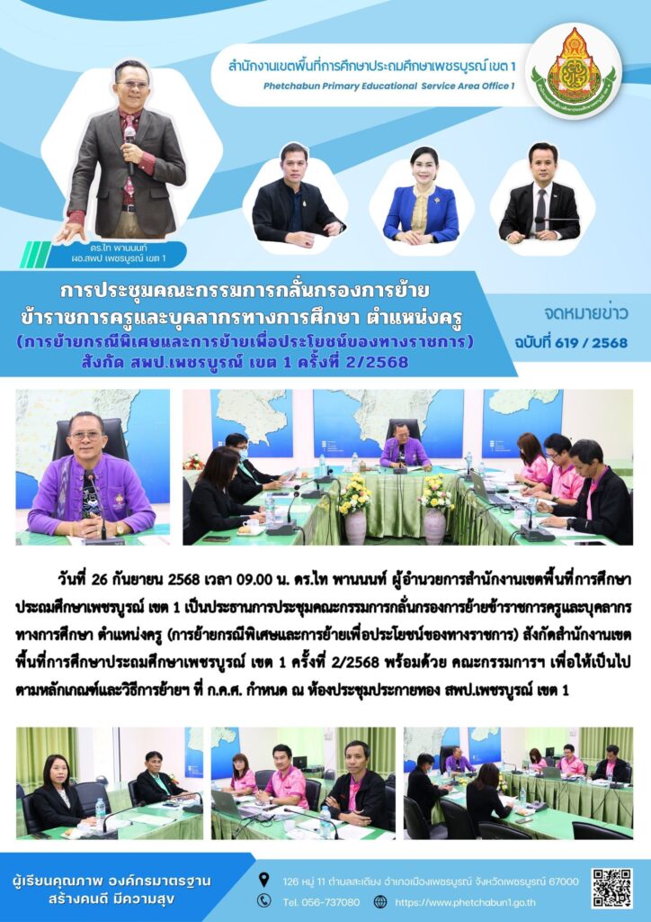 การประชุมคณะกรรมการกลั่นกรองการย้ายข้าราชการครูและบุคลากรทางการศึกษา ตำแหน่งครู (การย้ายกรณีพิเศษและการย้ายเพื่อประโยชน์ของทางราชการ) สังกัด สพป.เพชรบูรณ์ เขต 1 ครั้งที่ 2/2568By pinsherfa_dlct / September 26, 2025 Post Views: 4