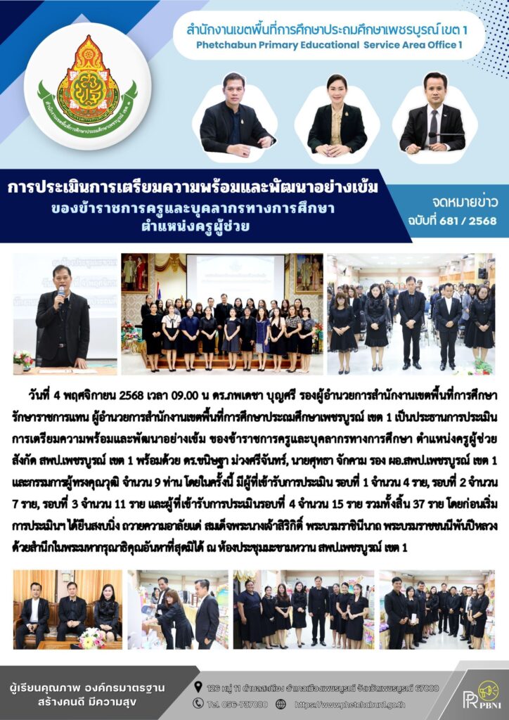การประเมินการเตรียมความพร้อมและพัฒนาอย่างเข้มของข้าราชการครูและบุคลากรทางการศึกษา ตำแหน่งครูผู้ช่วยBy pinsherfa_dlct / November 4, 2025 Post Views: 1