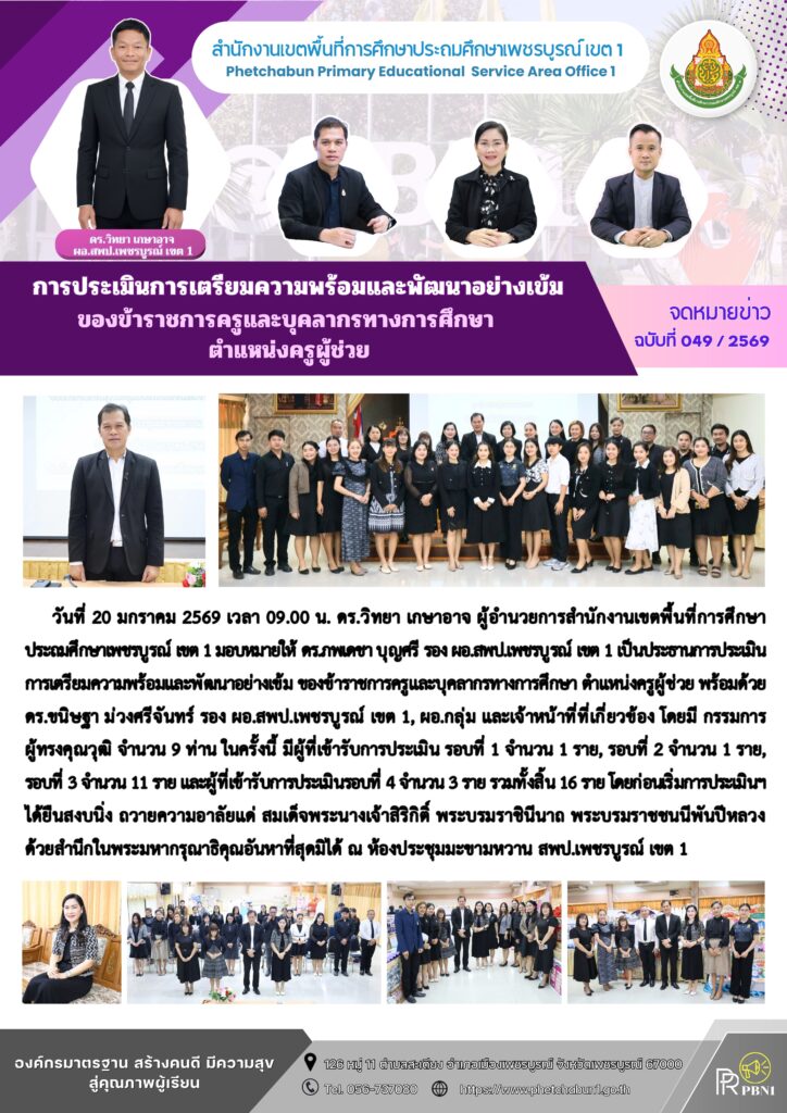 การประเมินการเตรียมความพร้อมและพัฒนาอย่างเข้มของข้าราชการครูและบุคลากรทางการศึกษา ตำแหน่งครูผู้ช่วยBy pinsherfa_dlct / January 20, 2026 Post Views: 1