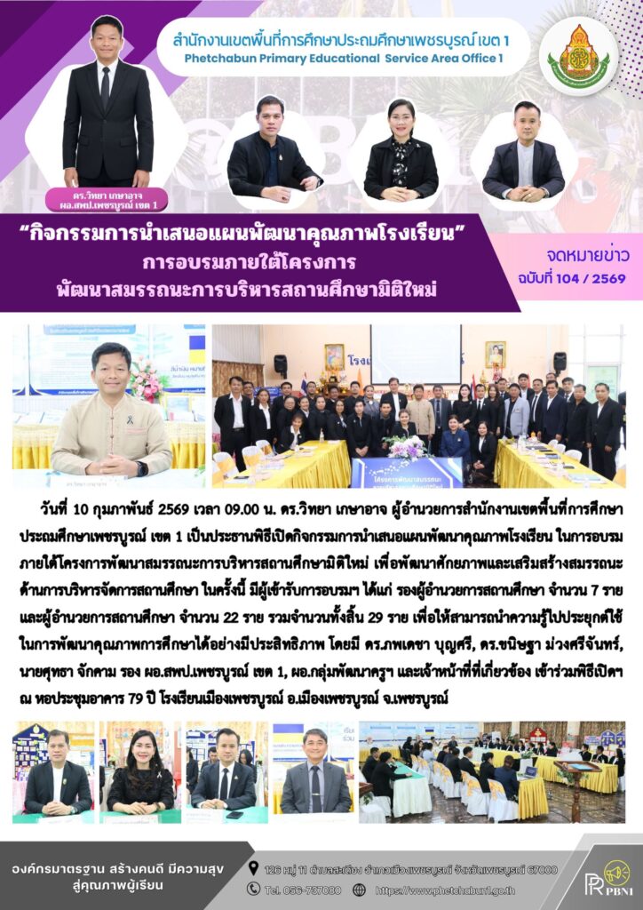 “กิจกรรมการนำเสนอแผนพัฒนาคุณภาพโรงเรียน” การอบรมภายใต้โครงการพัฒนาสมรรถนะการบริหารสถานศึกษามิติใหม่By pinsherfa_dlct / February 10, 2026 Post Views: 1