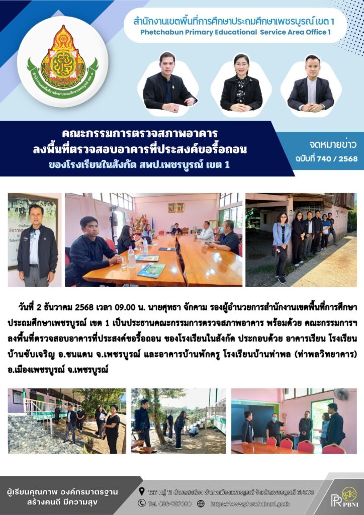 คณะกรรมการตรวจสภาพอาคาร ลงพื้นที่ตรวจสอบอาคารที่ประสงค์ขอรื้อถอนของโรงเรียนในสังกัด สพป.เพชรบูรณ์ เขต 1By pinsherfa_dlct / December 2, 2025 Post Views: 1