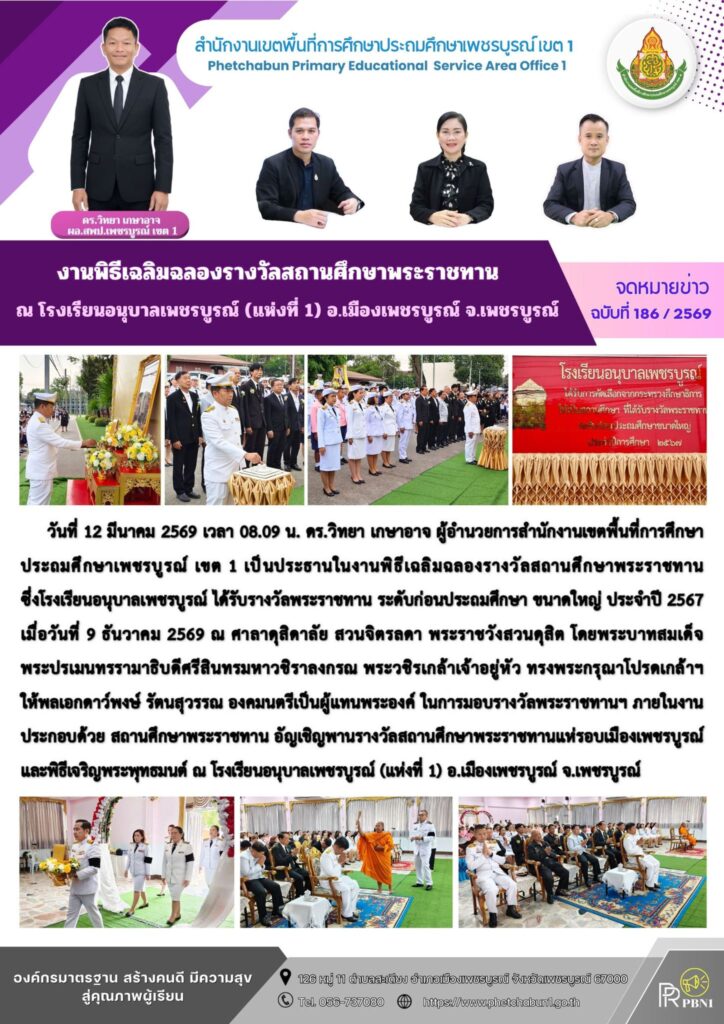 งานพิธีเฉลิมฉลองรางวัลสถานศึกษาพระราชทาน ณ โรงเรียนอนุบาลเพชรบูรณ์ (แห่งที่ 1)By pinsherfa_dlct / March 12, 2026 Post Views: 1