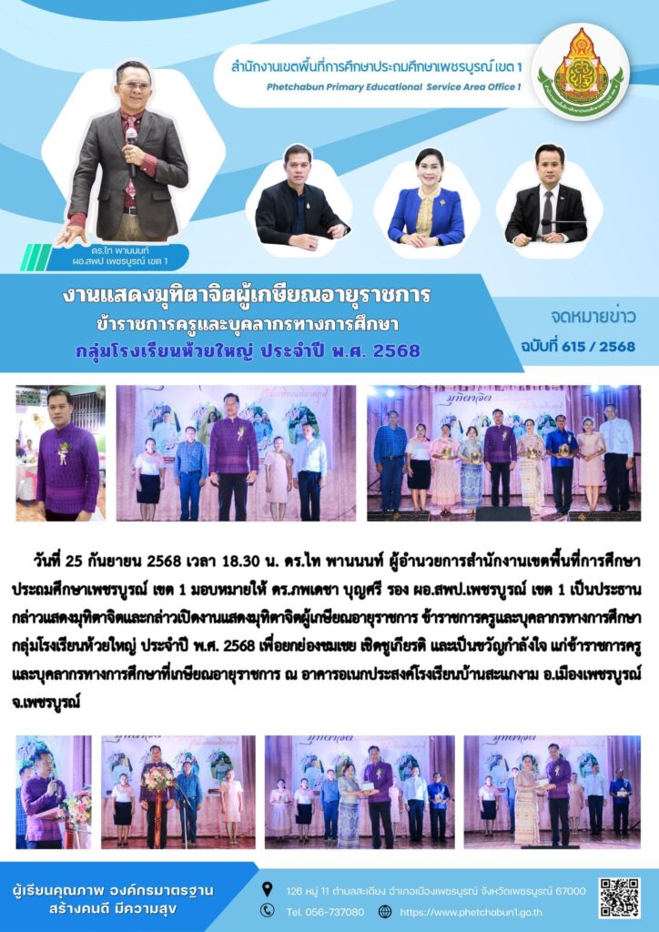 งานแสดงมุทิตาจิตผู้เกษียณอายุราชการ ข้าราชการครูและบุคลากรทางการศึกษา กลุ่มโรงเรียนห้วยใหญ่ ประจำปี พ.ศ. 2568By pinsherfa_dlct / September 25, 2025 Post Views: 6