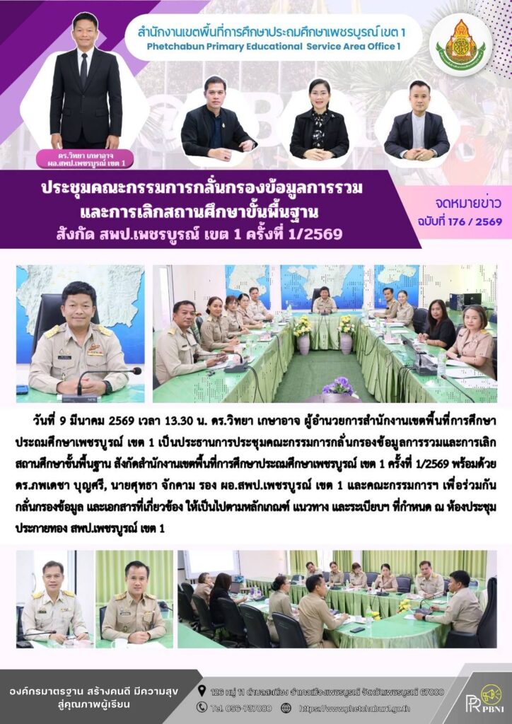 ประชุมคณะกรรมการกลั่นกรองข้อมูลการรวมและการเลิกสถานศึกษาขั้นพื้นฐาน สังกัด สพป.เพชรบูรณ์ เขต 1 ครั้งที่ 1/2569