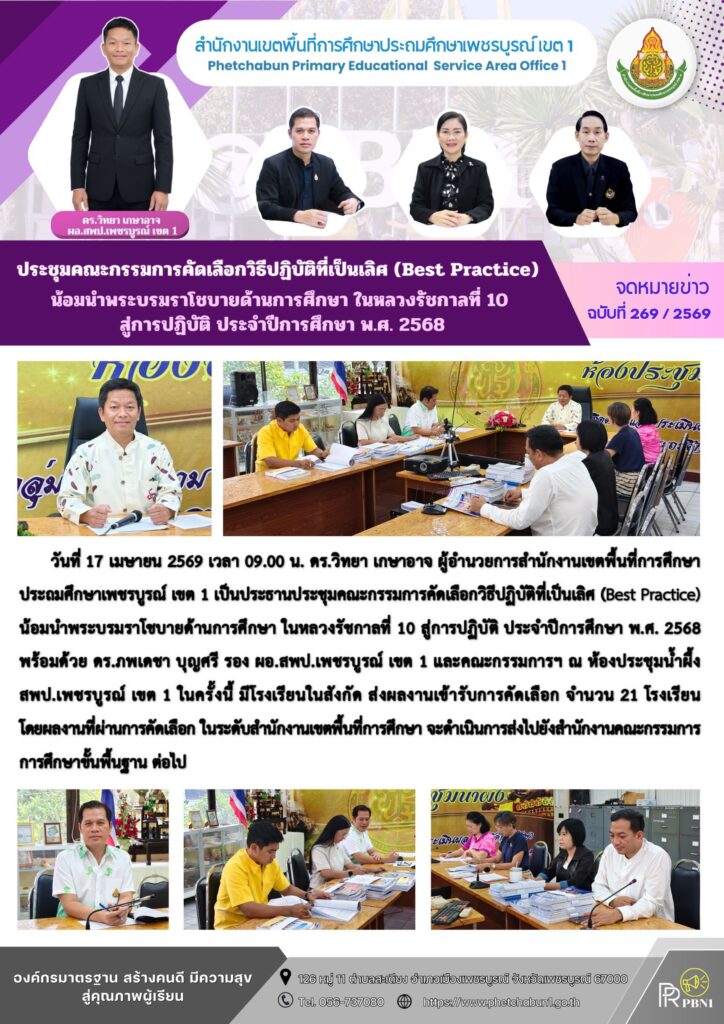 ประชุมคณะกรรมการคัดเลือกวิธีปฏิบัติที่เป็นเลิศ (Best Practice) น้อมนำพระบรมราโชบายด้านการศึกษา ในหลวงรัชกาลที่ 10 สู่การปฏิบัติ ประจำปีการศึกษา พ.ศ. 2568By pinsherfa_dlct / April 17, 2026 Post Views: 5