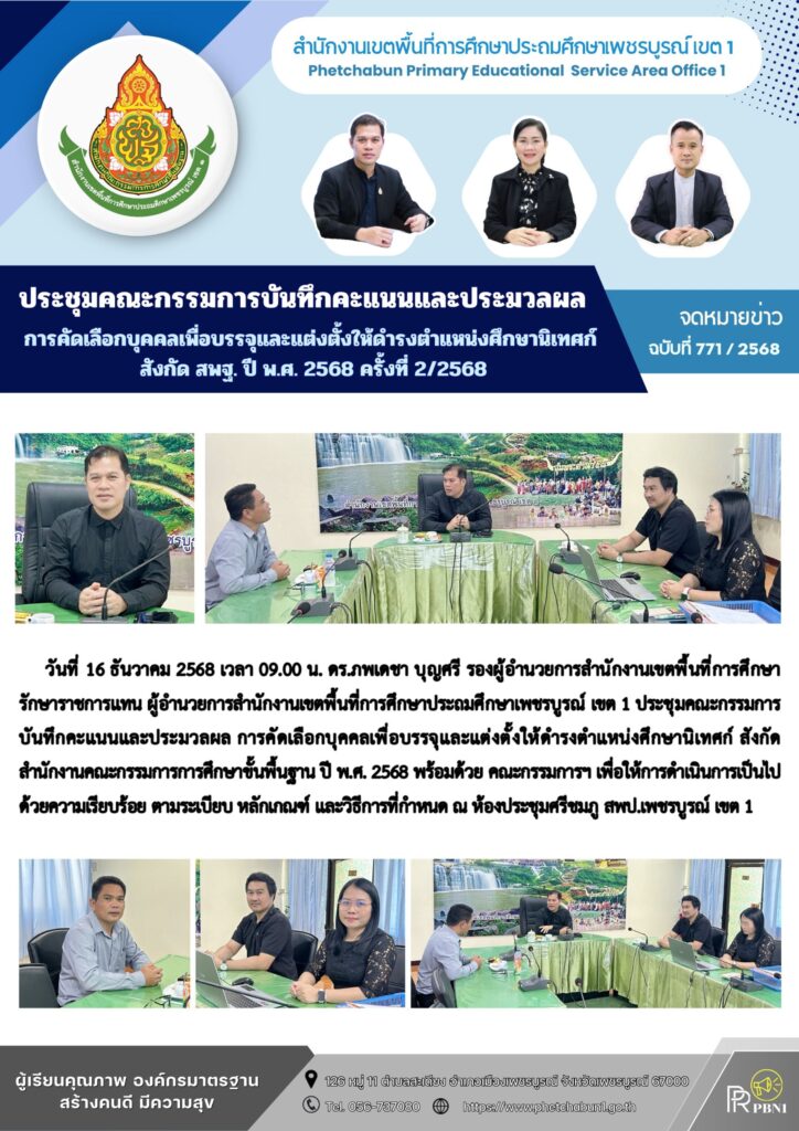 ประชุมคณะกรรมการบันทึกคะแนนและประมวลผลการคัดเลือกบุคคลเพื่อบรรจุและแต่งตั้งให้ดำรงตำแหน่งศึกษานิเทศก์ สังกัด สพฐ. ปี พ.ศ. 2568 ครั้งที่ 2/2568