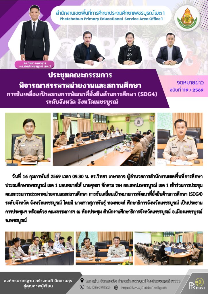 ประชุมคณะกรรมการพิจารณาสรรหาหน่วยงานและสถานศึกษา การขับเคลื่อนเป้าหมายการพัฒนาที่ยั่งยืนด้านการศึกษา (SDG4) ระดับจังหวัด จังหวัดเพชรบูรณ์