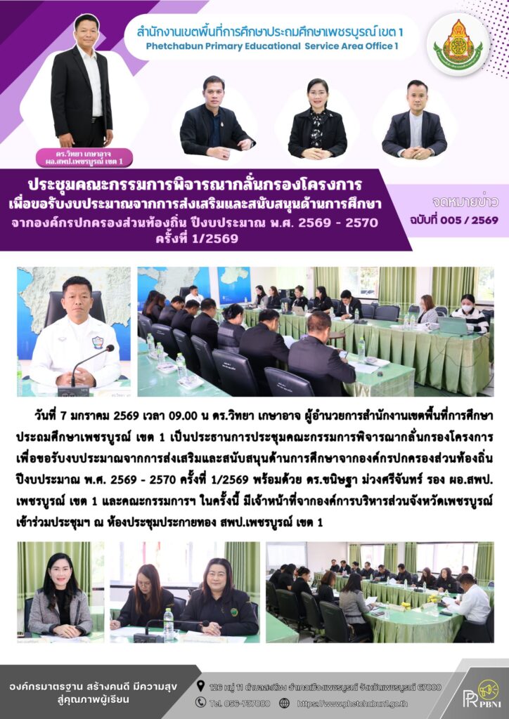 ประชุมคณะกรรมการพิจารณากลั่นกรองโครงการ เพื่อขอรับงบประมาณจากการส่งเสริมและสนับสนุนด้านการศึกษา จากองค์กรปกครองส่วนท้องถิ่น ปีงบประมาณ พ.ศ. 2569 – 2570 ครั้งที่ 1/2569