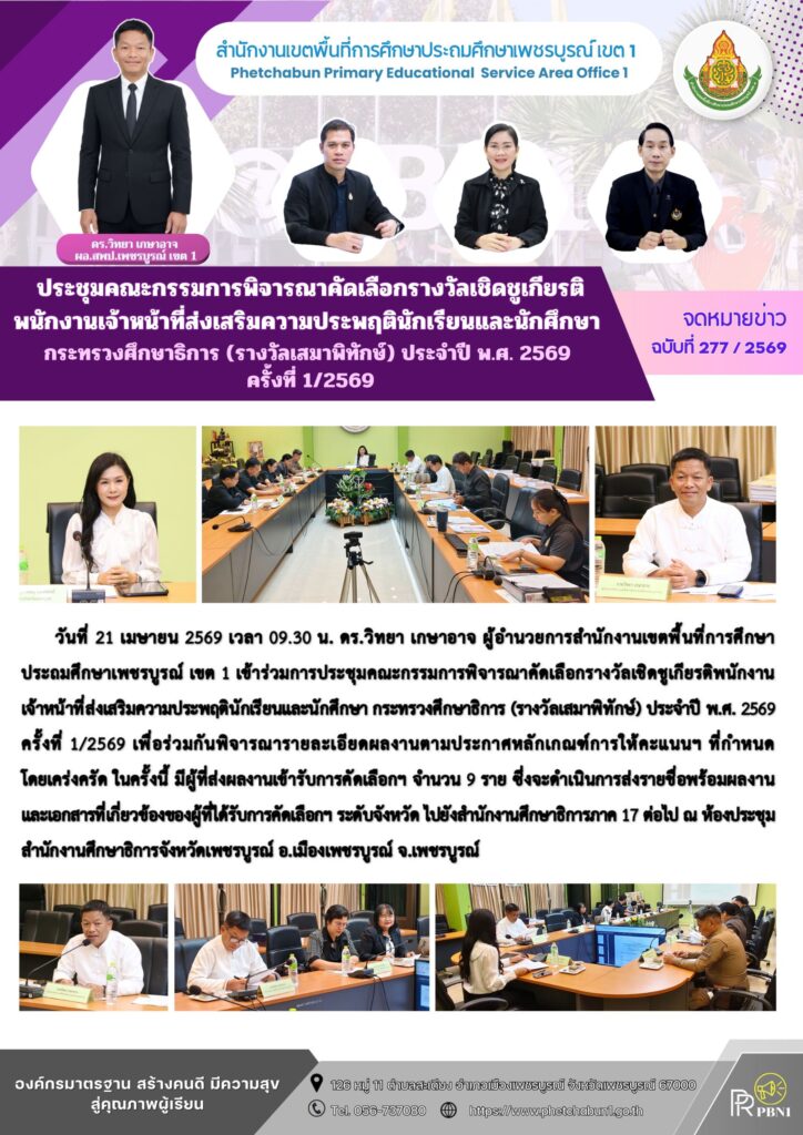 ประชุมคณะกรรมการพิจารณาคัดเลือกรางวัลเชิดชูเกียรติพนักงานเจ้าหน้าที่ส่งเสริมความประพฤตินักเรียนและนักศึกษากระทรวงศึกษาธิการ (รางวัลเสมาพิทักษ์) ประจำปี พ.ศ. 2569 ครั้งที่ 1/2569