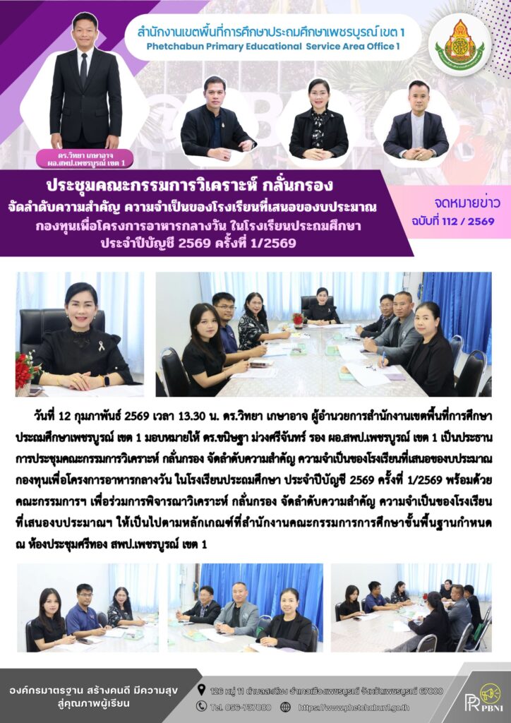 ประชุมคณะกรรมการวิเคราะห์ กลั่นกรอง จัดลำดับความสำคัญ ความจำเป็นของโรงเรียนที่เสนอของบประมาณกองทุนเพื่อโครงการอาหารกลางวัน ในดรงเรียนประถมศึกษา ประจำบัญชี 2569 ครั้งที่ 1/2569By pinsherfa_dlct / February 12, 2026 Post Views: 1