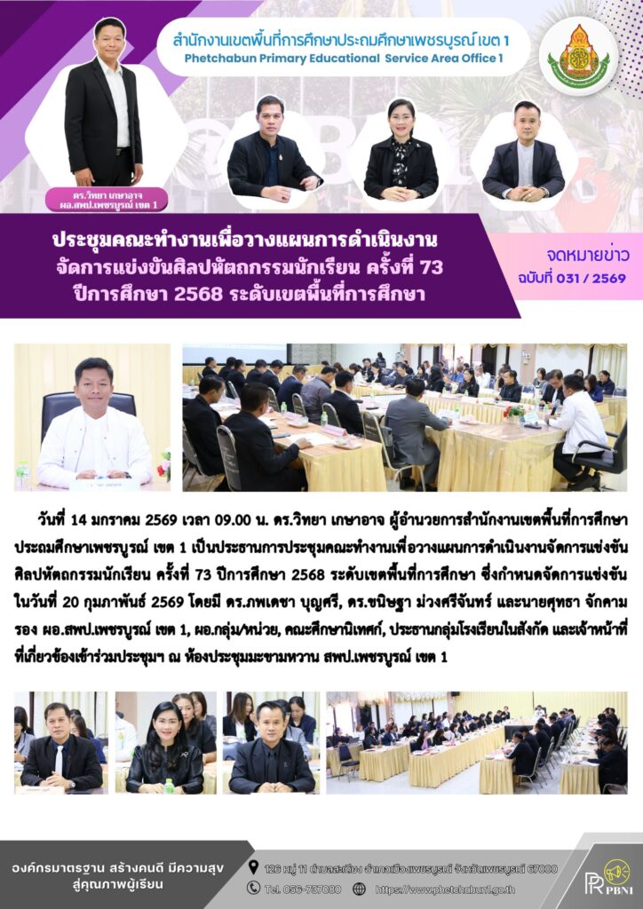ประชุมคณะทำงานเพื่อวางแผนการดำเนินงานจัดการแข่งขันศิลปหัตถกรรมนักเรียน ครั้งที่ 73 ปีการศึกษา 2568 ระดับเขตพื้นที่การศึกษาBy pinsherfa_dlct / January 14, 2026 Post Views: 1