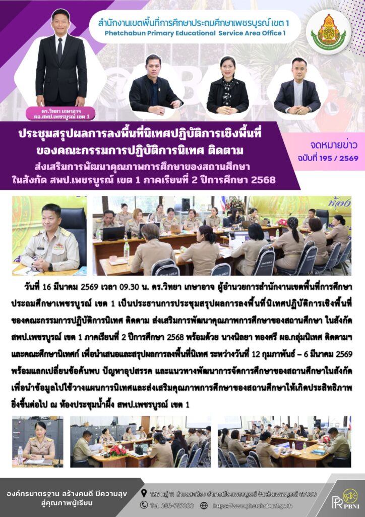 ประชุมสรุปผลการลงพื้นที่นิเทศปฏิบัติการเชิงพื้นที่ของคณะกรรมการปฏิบัติการนิเทศ ติดตาม ส่งเสริมการพัฒนาคุณภาพการศึกษาของสถานศึกษาในสังกัด สพป.เพชรบูรณ์ เขต 1 ภาคเรียนที่ 2 ปีการศึกษา 2568By pinsherfa_dlct / March 16, 2026 Post Views: 1