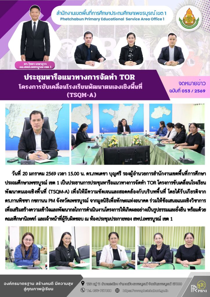 ประชุมหารือแนวทางการจัดทำ TOR โครงการขับเคลื่อนโรงเรียนพัฒนาตนเองเชิงพื้นที่ (TSQM-A)By pinsherfa_dlct / January 20, 2026 Post Views: 2