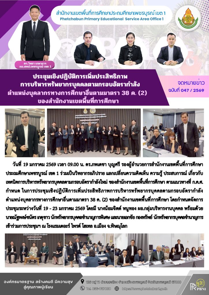 ประชุมเชิงปฏิบัติการเพิ่มประสิทธิภาพการบริหารทรัพยากรบุคคลตามกรอบอัตรากำลัง ตำแหน่งบุคลากรทางการศึกษาอื่น ตามมาตรา 38 ค. (2) ของสำนักงานเขตพื้นที่การศึกษาBy pinsherfa_dlct / January 19, 2026 Post Views: 3