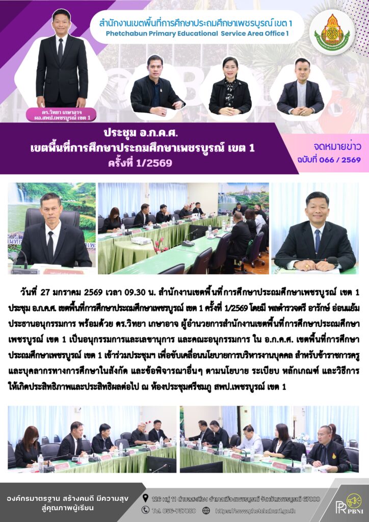 ประชุม อ.ก.ค.ศ. เขตพื้นที่การศึกษาประถมศึกษาเพชรบูรณ์ เขต 1 ครั้งที่ 1/2569By pinsherfa_dlct / January 27, 2026 Post Views: 2