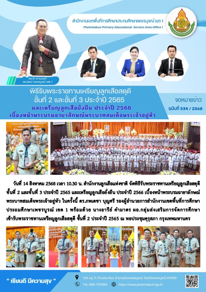 พิธีรับพระราชทานเหรียญลูกเสือสดุดี ชั้นที่ 2 และชั้นที่ 3 ประจำปี 2565 และเหรียญลูกเสือยั่งยืน ประจำปี 2566 เบื้องหน้าพระบรมฉายาลักษณ์พระบาทสมเด็จพระเจ้าอยู่หัวBy pinsherfa_dlct / August 14, 2025 Post Views: 49