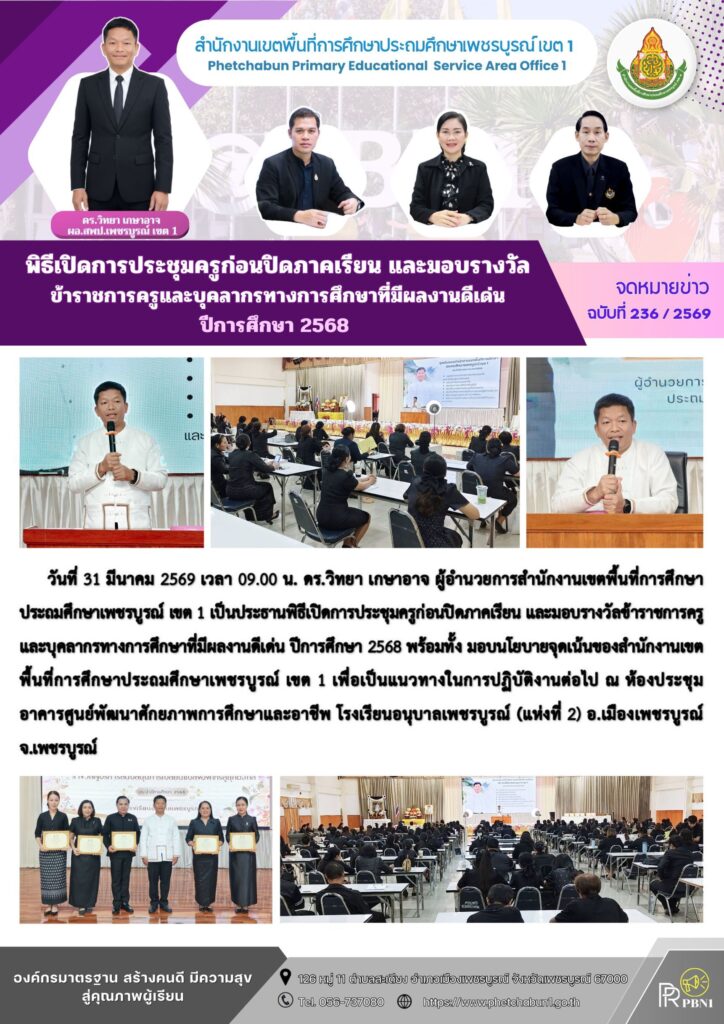 พิธีเปิดการประชุมครูก่อนเปิดภาคเรียน และมอบรางวัลข้าราชการครูและบุคลากรทางการศึกษาที่มีผลงานดีเด่น ปีการศึกษา 2568By pinsherfa_dlct / March 31, 2026 Post Views: 5