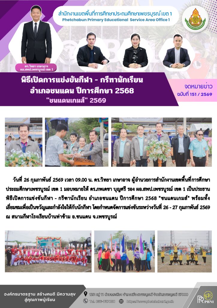 พิธีเปิดการแข่งขันกีฬา – กรีฑานักเรียน อำเภอชนแดน ปีการศึกษา 2568 “ชนแดนเกมส์” 2569