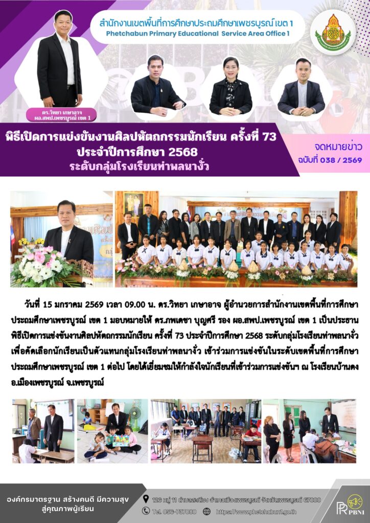 พิธีเปิดการแข่งขันงานศิลปหัตถกรรมนักเรียน ครั้งที่ 73 ประจำปีการศึกษา 2568 ระดับกลุ่มโรงเรียนท่าพลนางั่วBy pinsherfa_dlct / January 15, 2026 Post Views: 1