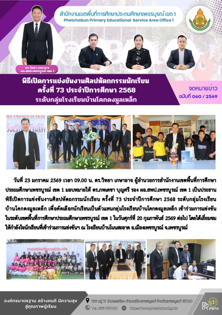 พิธีเปิดการแข่งขันงานศิลปหัตถกรรมนักเรียน ครั้งที่ 73 ประจำปีการศึกษา 2568 ระดับกลุ่มโรงเรียนบ้านโคกดงมูลเหล็กBy pinsherfa_dlct / January 23, 2026 Post Views: 2