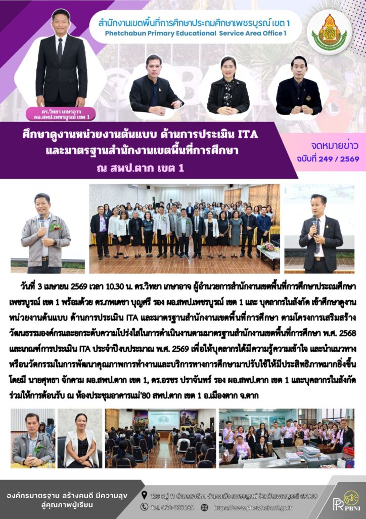 ศึกษาดูงานหน่วยงานต้นแบบ ด้านการประเมิน ITA และมาตรฐานสำนักงานเขตพื้นที่การศึกษา ณ สพป.ตาก เขต 1By pinsherfa_dlct / April 2, 2026 Post Views: 1