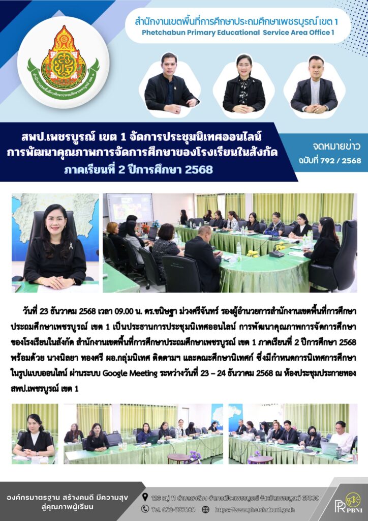 สพป.เพชรบูรณ์ เขต 1 จัดการประชุมนิเทศออนไลน์ การพัฒนาคุณภาพการจัดการศึกษาของโรงเรียนในสังกัด ภาคเรียนที่ 2 ปีการศึกษา 2568By pinsherfa_dlct / December 23, 2025 Post Views: 1