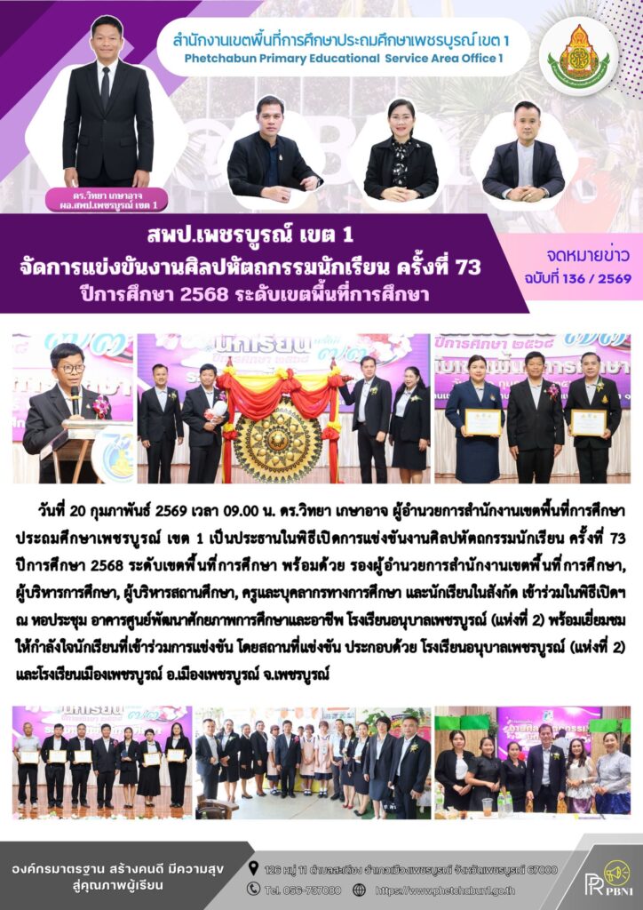 สพป.เพชรบูรณ์ เขต 1 จัดการแข่งขันงานศิลปหัตถกรรมนักเรียน ครั้งที่ 73 ปีการศึกษา 2568 ระดับเขตพื้นที่การศึกษา