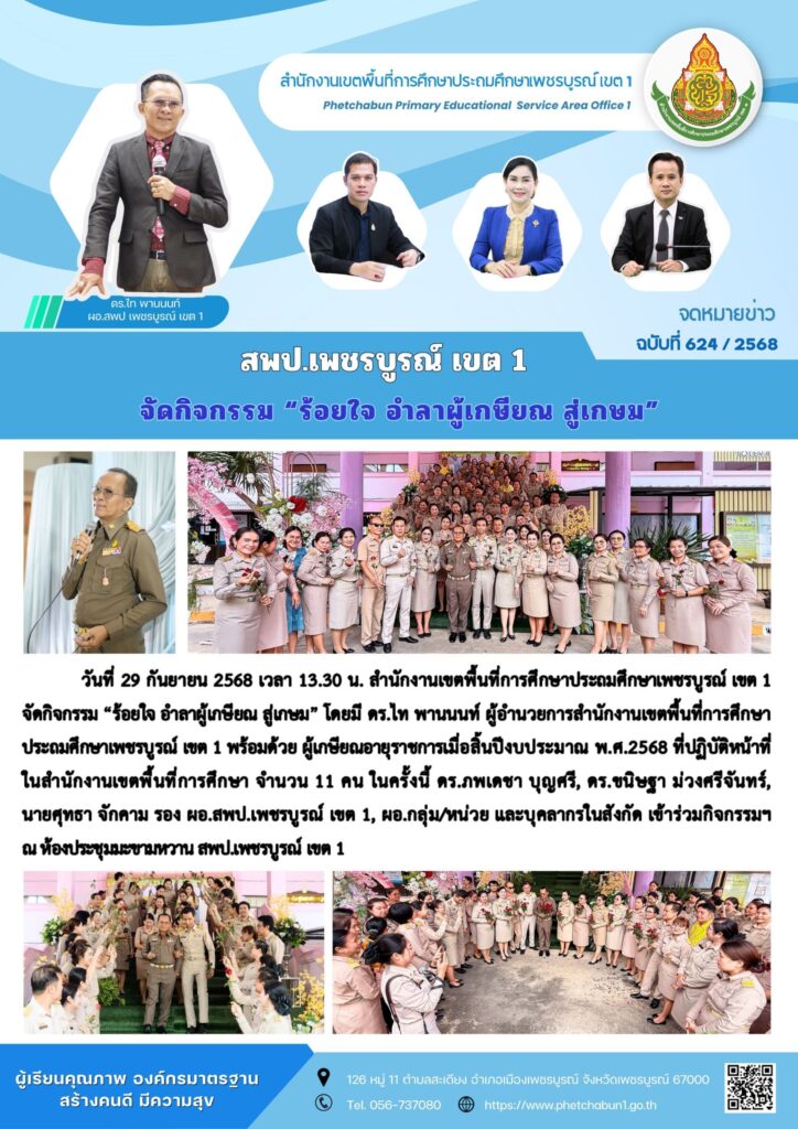 สพป.เพชรบูรณ์ เขต 1 จัดกิจกรรม “ร้อยใจ อำลาผู้เกษียณ สู่เกษม”