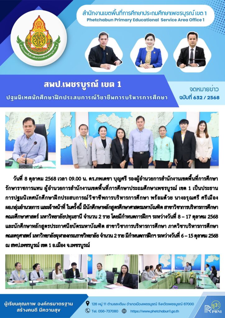 สพป.เพชรบูรณ์ เขต 1 ปฐมนิเทศนักศึกษาฝึกประสบการณ์วิชาชีพการบริหารการศึกษาBy pinsherfa_dlct / October 8, 2025 Post Views: 3