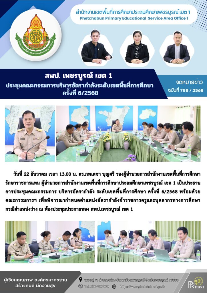 สพป.เพชรบูรณ์ เขต 1 ประชุมคณะกรรมการบริหารอัตรากำลังระดับเขตพื้นที่การศึกษา ครั้งที่ 6/2568By pinsherfa_dlct / December 22, 2025 Post Views: 6