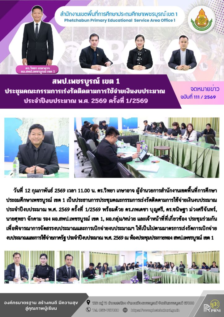 สพป.เพชรบูรณ์ เขต 1 ประชุมคณะกรรมการเร่งรัดติดตามการใช้จ่ายงบประมาณ ประจำปีงบประมาณ พ.ศ. 2569 ครั้งที่ 1/2569By pinsherfa_dlct / February 12, 2026 Post Views: 1