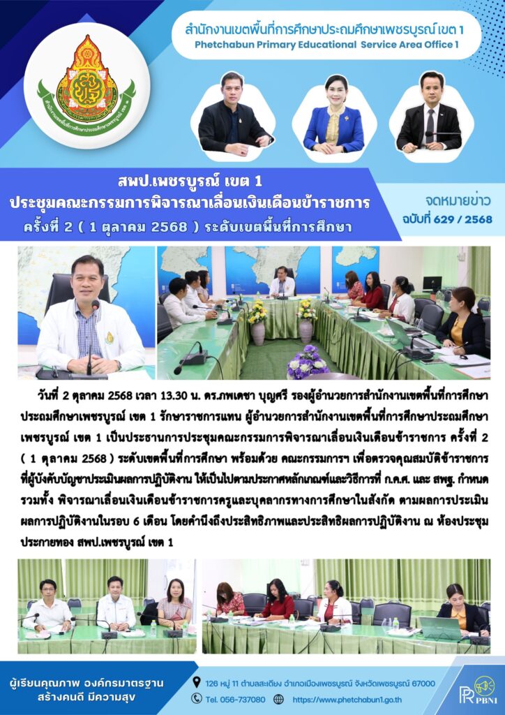 สพป.เพชรบูรณ์ เขต 1 ประชุมคณะกรรมการพิจารณาเลื่อนเงินเดือนข้าราชการ ครั้งที่ 2 (1 ตุลาคม 2568) ระดับเขตพื้นที่การศึกษาBy pinsherfa_dlct / October 2, 2025 Post Views: 26