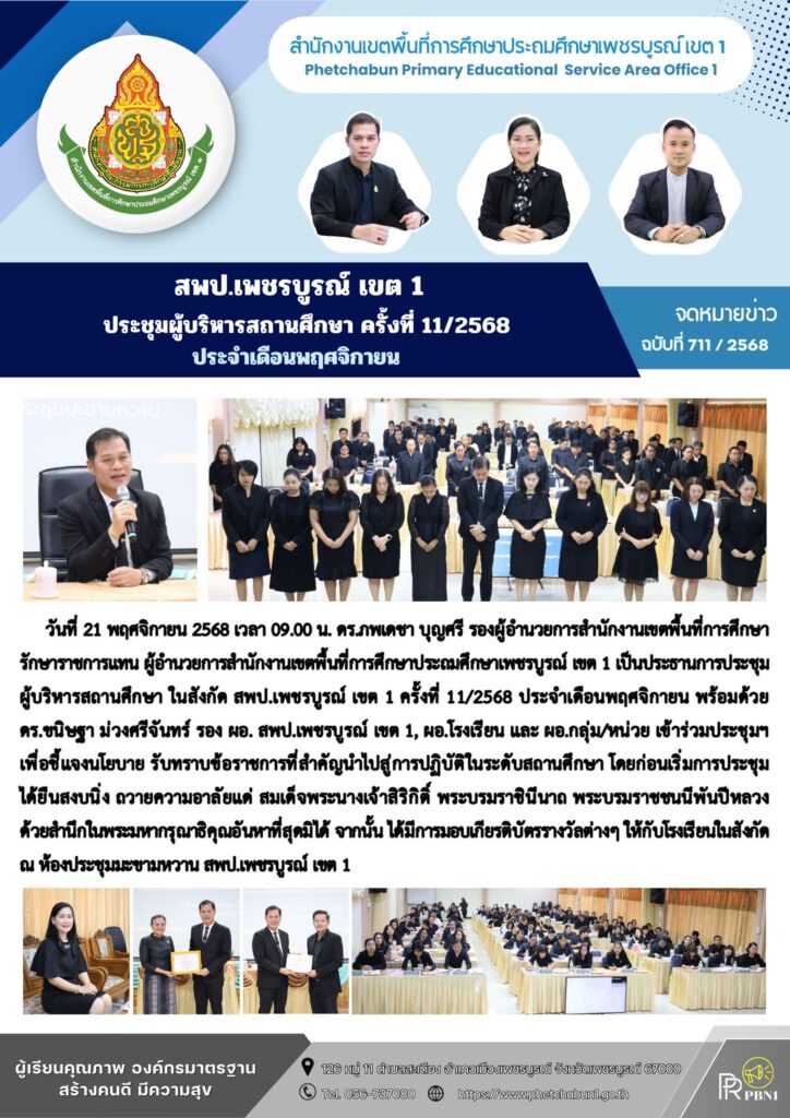 สพป.เพชรบูรณ์ เขต 1 ประชุมผู้บริหารสถานศึกษา ครั้งที่ 11/2568 ประจำเดือนพฤศจิกายนBy pinsherfa_dlct / November 21, 2025 Post Views: 1