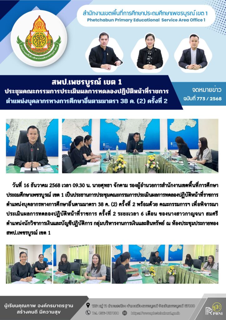 สพป.เพชรบูรณ์ เขต 1 ประชุมคณะกรรมการประเมินผลการทดลองปฏิบัติหน้าที่ราชการ ตำแหน่งบุคลากรทางการศึกษาอื่นตามมาตรา 38 ค. (2) ครั้งที่ 2By pinsherfa_dlct / December 16, 2025 Post Views: 2