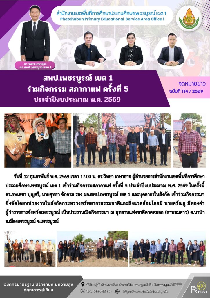 สพป.เพชรบูรณ์ เขต 1 ร่วมกิจกรรม สภากาแฟ ครั้งที่ 5 ประจำปีงบประมาณ พ.ศ. 2569By pinsherfa_dlct / February 12, 2026 Post Views: 1