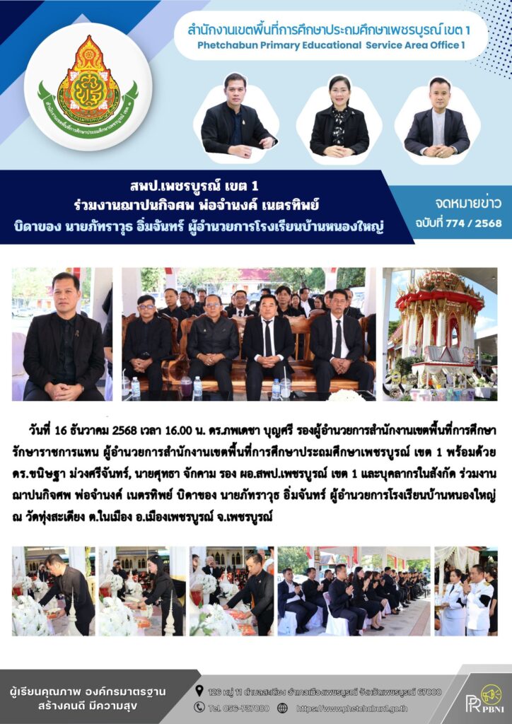 สพป.เพชรบูรณ์ เขต 1 ร่วมงานฌาปนกิจศพ พ่อจำนงค์ เนตรทิพย์ บิดาของ นายภัทราวุธ อิ่มจันทร์ ผู้อำนวยการโรงเรียนบ้านหนองใหญ่By pinsherfa_dlct / December 16, 2025 Post Views: 2