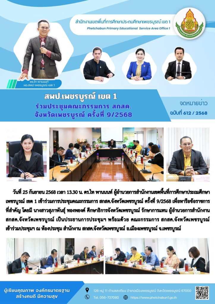 สพป.เพชรบูรณ์ เขต 1 ร่วมประชุมคณะกรรมการ สกสค. จังหวัดเพชรบูรณ์ ครั้งที่ 9/2568By pinsherfa_dlct / September 25, 2025 Post Views: 9