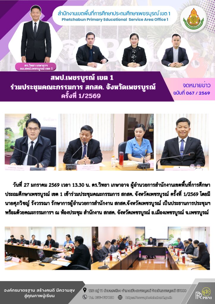 สพป.เพชรบูรณ์ เขต 1 ร่วมประชุมคณะกรรมการ สกสค. จังหวัดเพชรบูรณ์ ครั้งที่ 1/2569By pinsherfa_dlct / January 27, 2026 Post Views: 2