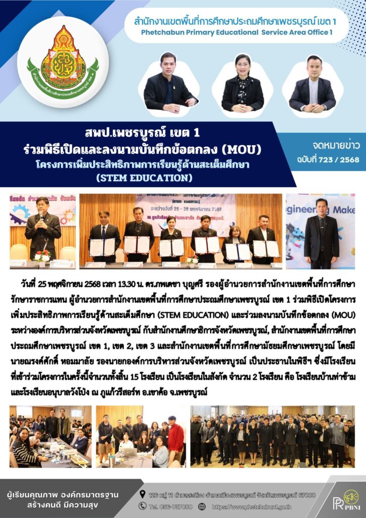 สพป.เพชรบูรณ์ เขต 1 ร่วมพิธีเปิดและลงนามบันทึกข้อตกลง (MOU) โครงการเพิ่มประสิทธิภาพการเรียนรู้ด้านสะเต็มศึกษา (STEM EDUCATION)By pinsherfa_dlct / November 25, 2025 Post Views: 3