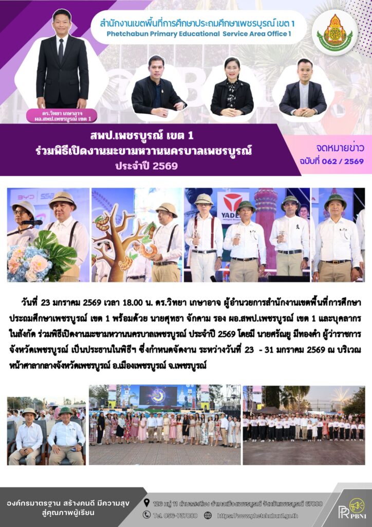 สพป.เพชรบูรณ์ เขต 1 ร่วมพิธีเปิดงานมะขามหวานนครบาลเพชรบูรณ์ ประจำปี 2569By pinsherfa_dlct / January 23, 2026 Post Views: 2
