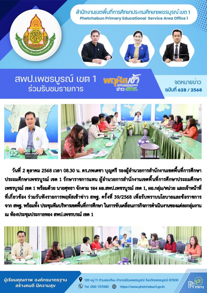 สพป.เพชรบูรณ์ เขต 1 ร่วมรับชมรายการ พฤหัสเช้า ข่าว สพฐ.By pinsherfa_dlct / October 2, 2025 Post Views: 1