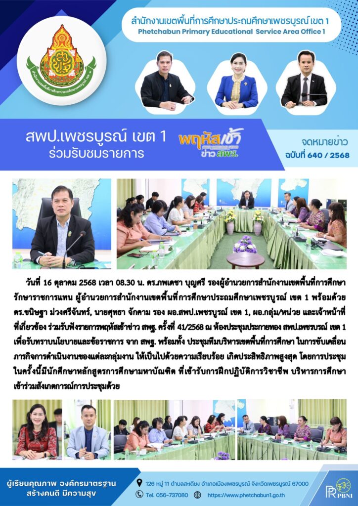 สพป.เพชรบูรณ์ เขต 1 ร่วมรับชมรายการ พฤหัสเช้า ข่าว สพฐ.By pinsherfa_dlct / October 16, 2025 Post Views: 1