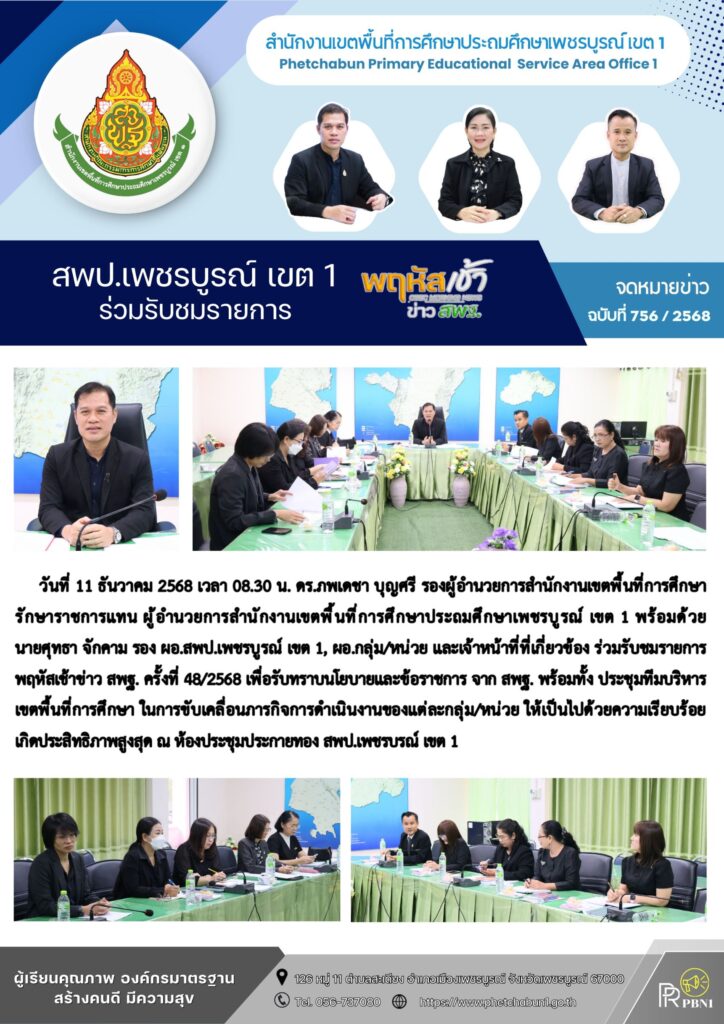 สพป.เพชรบูรณ์ เขต 1 ร่วมรับชมรายการ พฤหัสเช้า ข่าว สพฐ.By pinsherfa_dlct / December 11, 2025 Post Views: 25