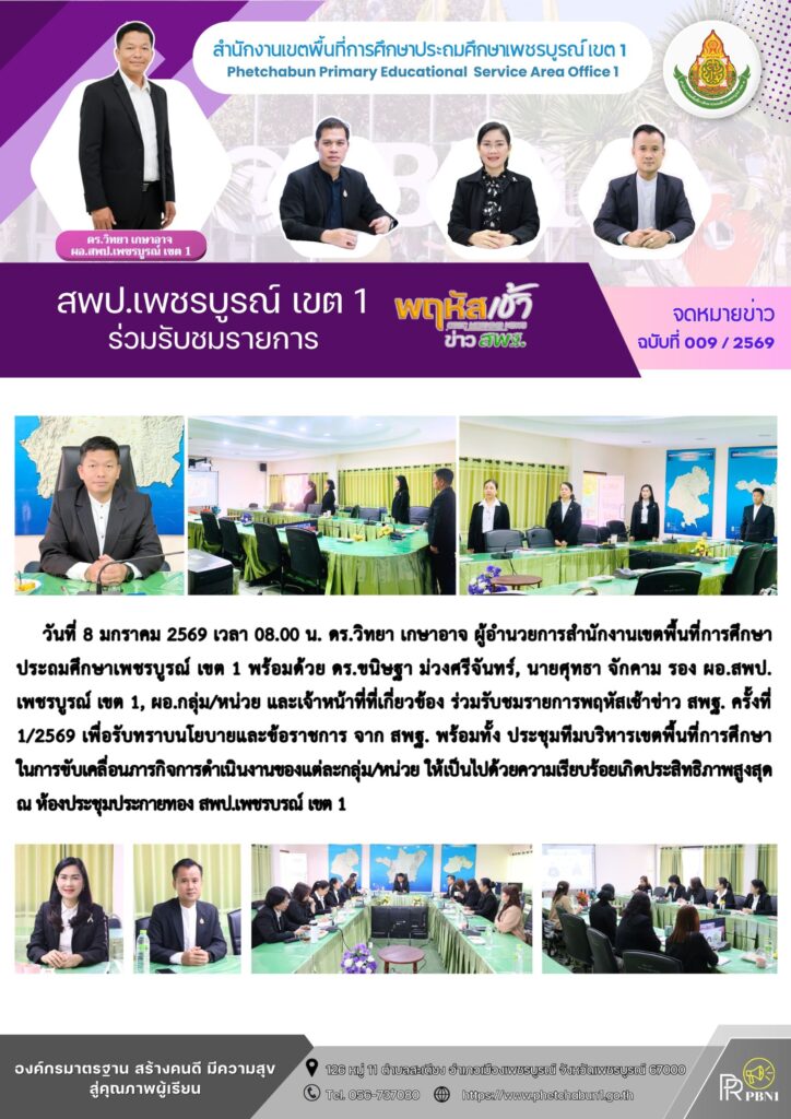 สพป.เพชรบูรณ์ เขต 1 ร่วมรับชมรายการ พฤหัสเช้า ข่าว สพฐ.By pinsherfa_dlct / January 8, 2026 Post Views: 2