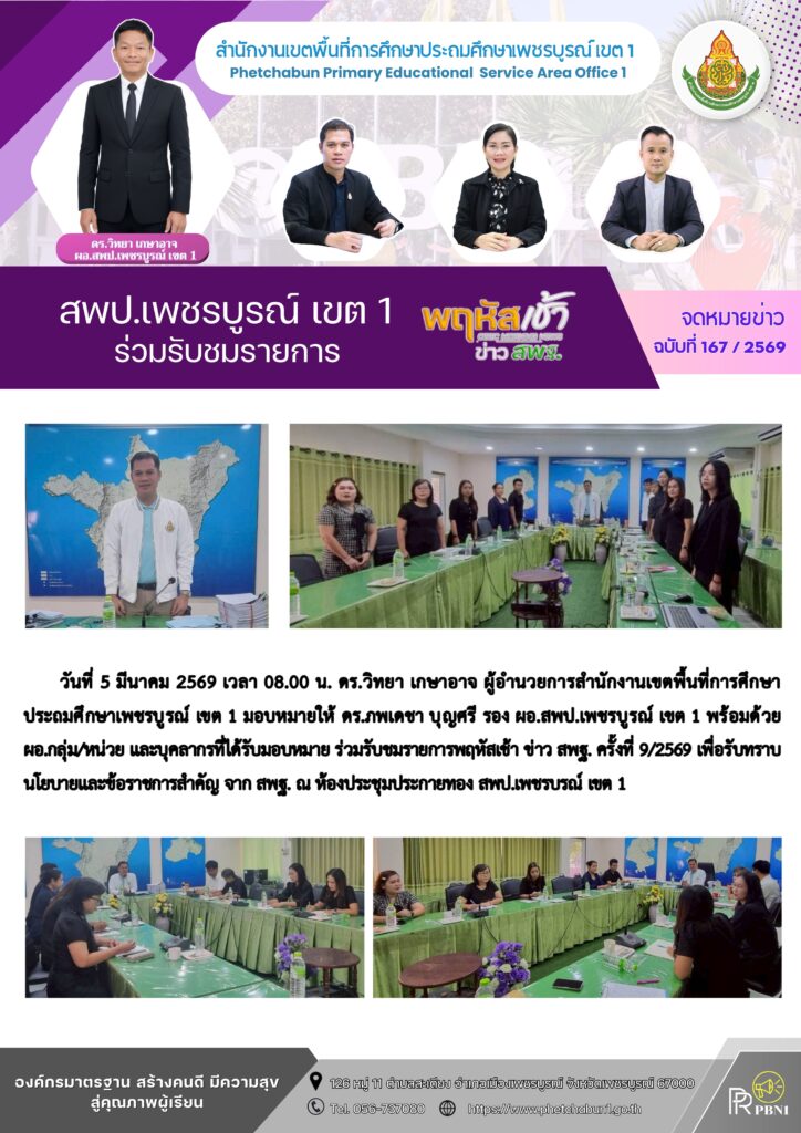 สพป.เพชรบูรณ์ เขต 1 ร่วมรับชมรายการ พฤหัสเช้า ข่าว สพฐ.By pinsherfa_dlct / March 5, 2026 Post Views: 5