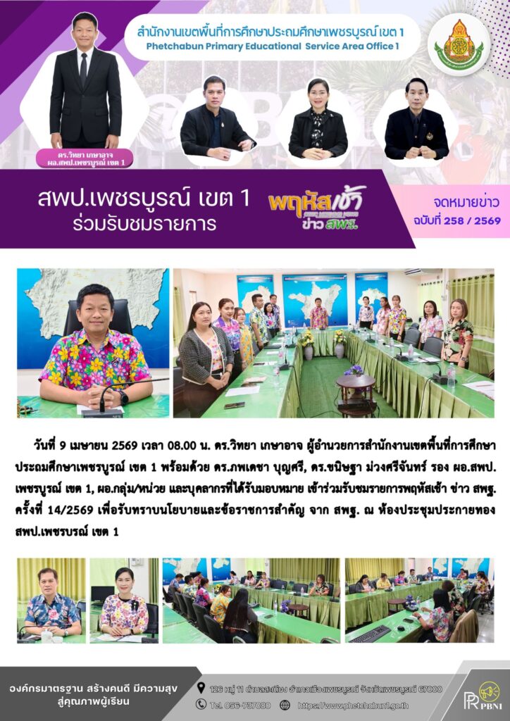 สพป.เพชรบูรณ์ เขต 1 ร่วมรับชมรายการพฤหัสเช้า ข่าว สพฐ.By pinsherfa_dlct / April 9, 2026 Post Views: 1