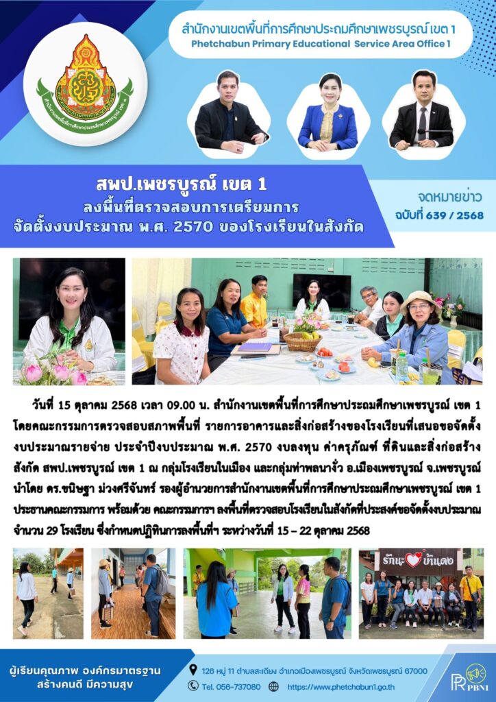 สพป.เพชรบูรณ์ เขต 1 ลงพื้นที่ตรวจสอบการเตรียมการจัดตั้งงบประมาณ พ.ศ. 2570 ของโรงเรียนในสังกัดBy pinsherfa_dlct / October 15, 2025 Post Views: 1