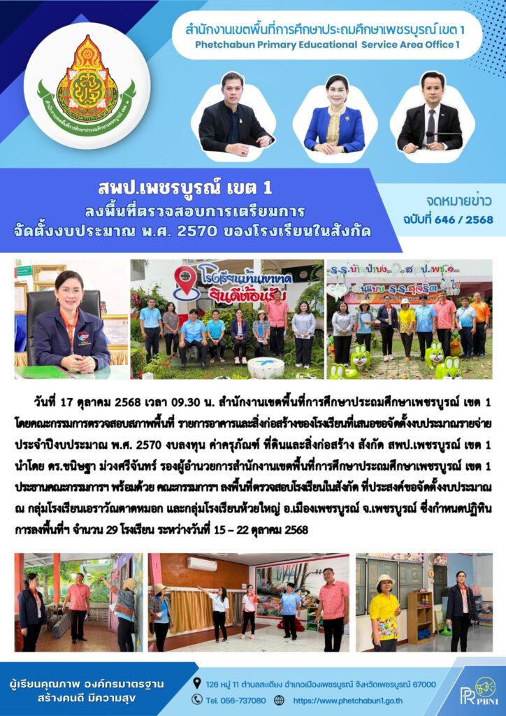 สพป.เพชรบูรณ์ เขต 1 ลงพื้นที่ตรวจสอบการเตรียมการจัดตั้งงบประมาณ พ.ส. 2570 ของโรงเรียนในสังกัดBy pinsherfa_dlct / October 17, 2025 Post Views: 11