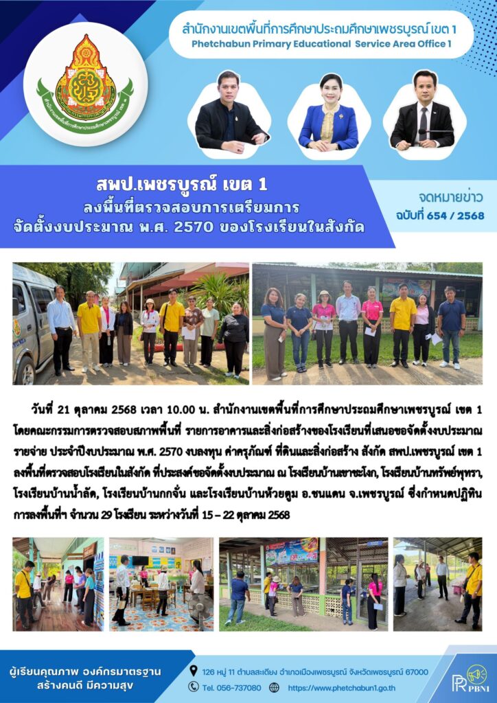 สพป.เพชรบูรณ์ เขต 1 ลงพื้นที่ตรวจสอบการเตรียมการจัดตั้งงบประมาณ พ.ส. 2570 ของโรงเรียนในสังกัดBy pinsherfa_dlct / October 21, 2025 Post Views: 3