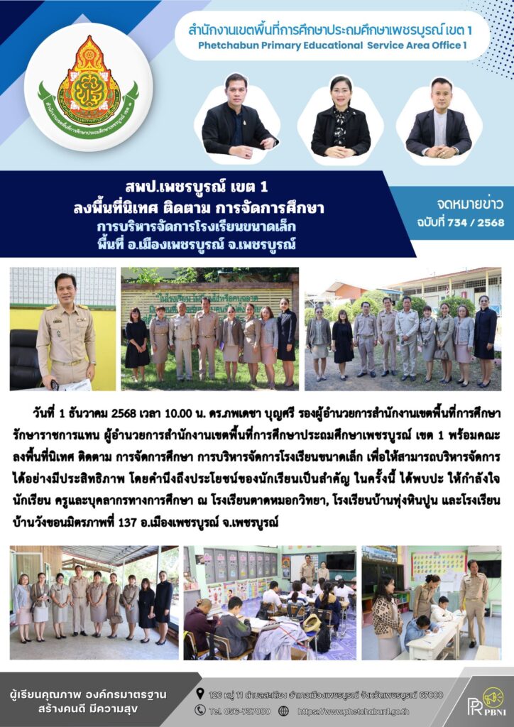 สพป.เพชรบูรณ์ เขต 1 ลงพื้นที่นิเทศ ติดตาม การจัดการศึกษา การบริหารจัดการโรงเรียนขนาดเล็ก พื้นที่ อ.เมืองเพชรบูรณ์ จ.เพชรบูรณ์By pinsherfa_dlct / December 1, 2025 Post Views: 2